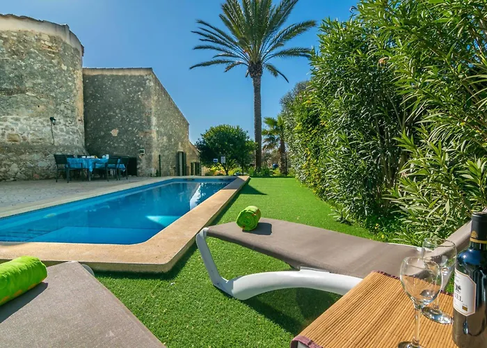 Villa Es Moli Can Torres de 350 m^2 se trouve à 10 minutes à pied des Es CINE des Illes Balears, et dispose d'un accès rapide à Couvent Convent dels Mínims. La villa est aménagée avec un espace de repas, un canapé et le Wi-Fi.
